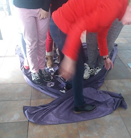 Se extiende una manta o sábana en el suelo y se pide al alumnado que se “suban” encima.
