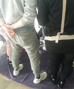 Sólo se les indica que no se pueden apoyar en nada que esté fuera del barco (mesas, paredes, etc), y por supuesto no pueden tocar el mar (pisar fuera de la manta). Se irá vigilando que esto no sucede en ningún momento.